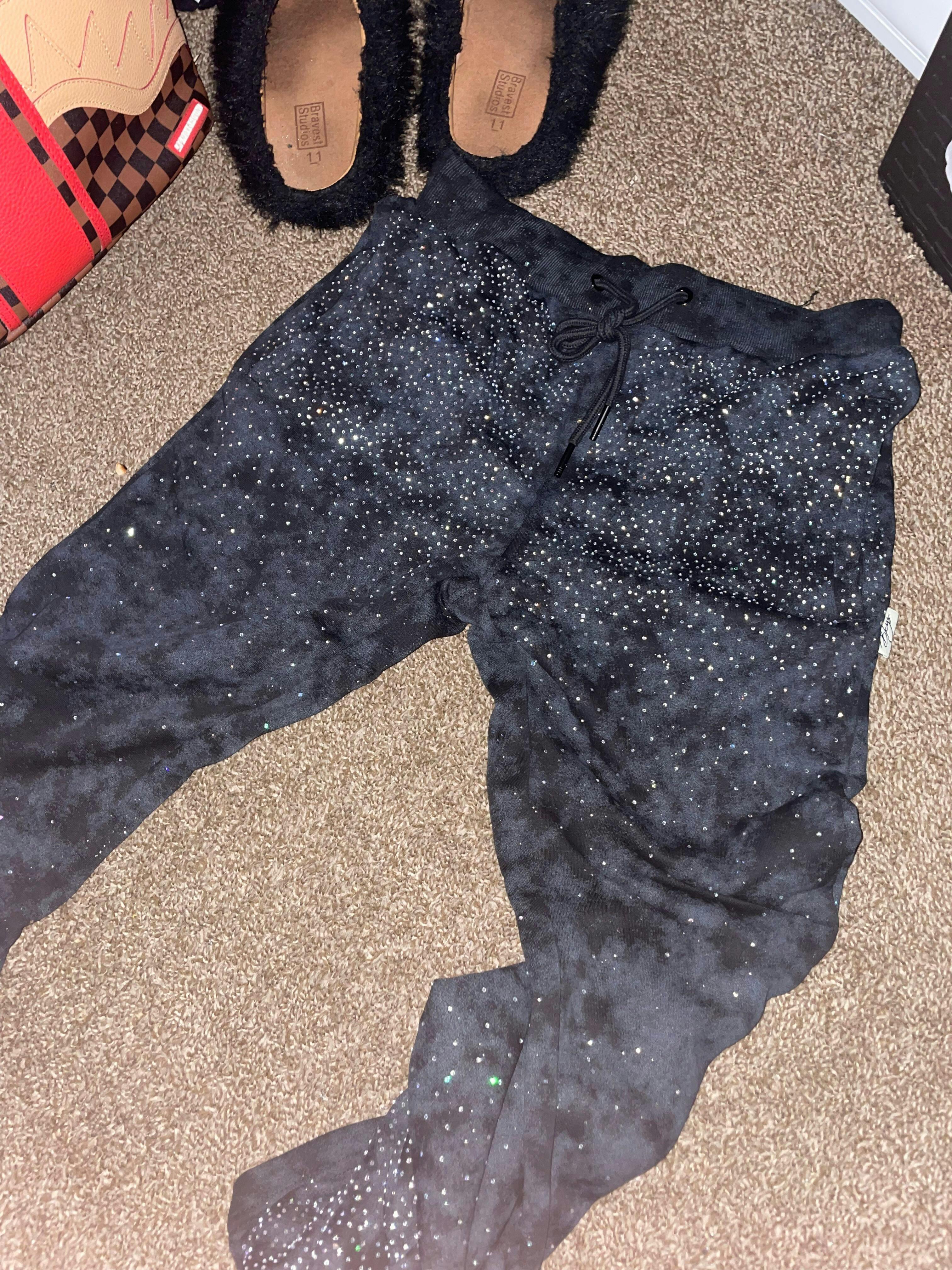 BKYS - Rhinestone Stacked Sweat Pants - Black - P1427 zi